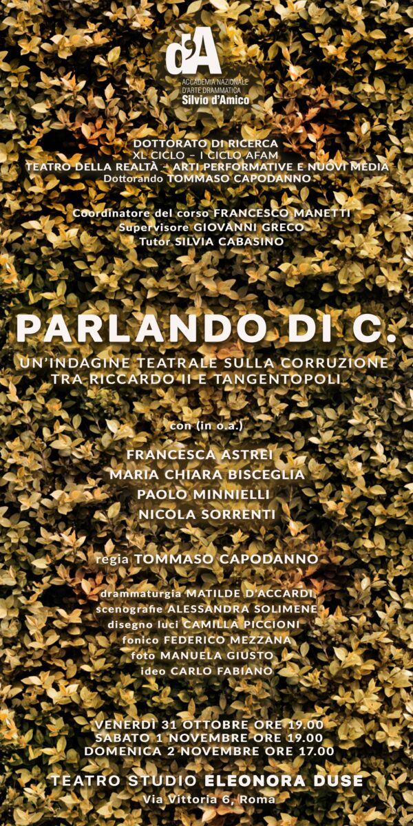 Progetto vincitore della terza edizione del Premio Silvio d’Amico alla regia realizzato dall’Accademia Nazionale d’Arte Drammatica Silvio d’Amico in collaborazione…
